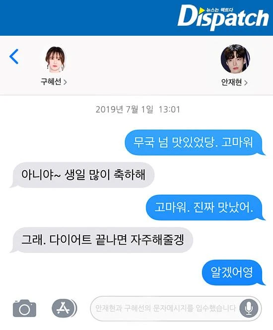 Dispatch khẳng định rằng kiểm tra kết quả tin nhắn của Ahn Jae Hyun suốt hai năm qua cho thấy không có đoạn tin nhắn hay hội thoại đặc biệt nào, cũng không có đủ tin nhắn cho thấy Ahn có mối quan hệ mờ ám với phụ nữ khác. Từ 1-9-2018, cặp đôi vẫn ngọt ngào và thường gửi cho nhau những đoạn tin nhắn đầy mùi mẫn như "Anh yêu em" hay "Em yêu anh". Vì bận rộn với việc quay phim nên Ahn Jae Hyun thường xuyên vắng nhà, Goo Hye Sun cảm thấy cô đơn và cả hai bắt đầu trở nên xa cách. Ngày 23-10-2018, Goo Hye Sun gửi tin nhắn trách móc chồng vì thất hứa.
