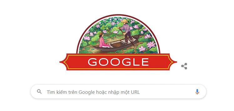 Hôm nay, 2-9, Google chúc mừng chúc mừng ngày Quốc khánh Việt Nam 2020 bằng Doodle đậm chất Việt Nam với hình ảnh chèo thuyền giữa hồ sen.