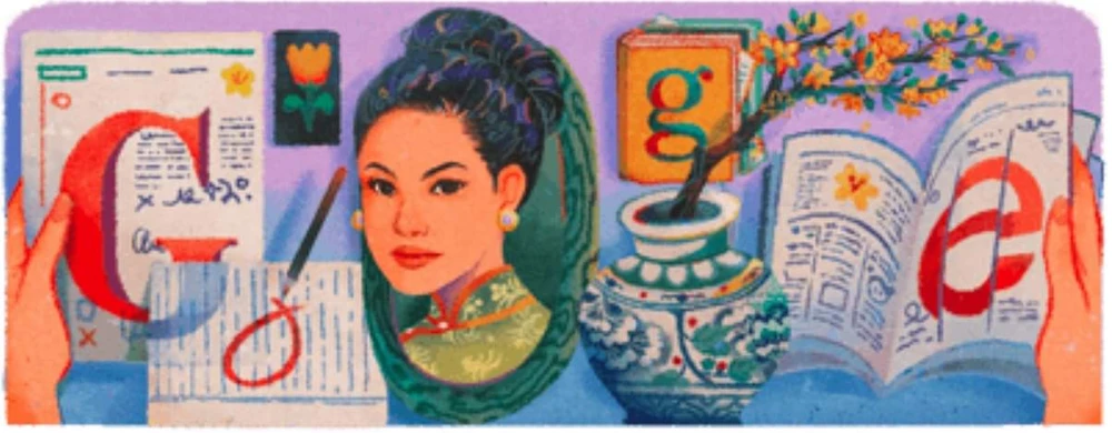 Google Doodle tôn vinh Sương Nguyệt Anh do nghệ sĩ khách mời từ Hà Nội Camelia Phạm thực hiện.