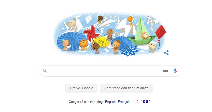 Nhằm tôn vinh ngày lễ Quốc tế Thiếu nhi, Google Doodle đã thay đổi giao diện của mình.