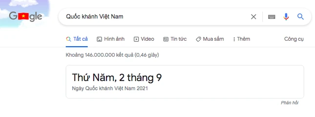 Google đã thay đổi giao diện mừng ngày Quốc khánh của Việt Nam. Ảnh: chụp màn hình