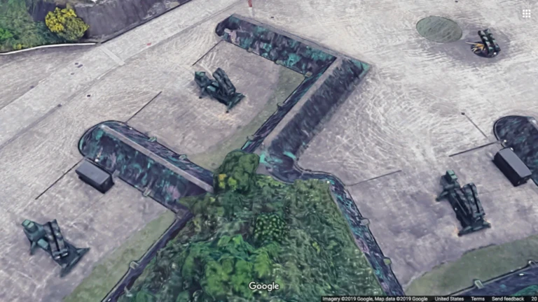 Tất cả các thiết bị quân sự của Đài Loan, từ bệ phóng cho tới kiểu mẫu của tên lửa đều hiện lên rõ rệt trên bản đồ 3D. Ảnh: Google Maps