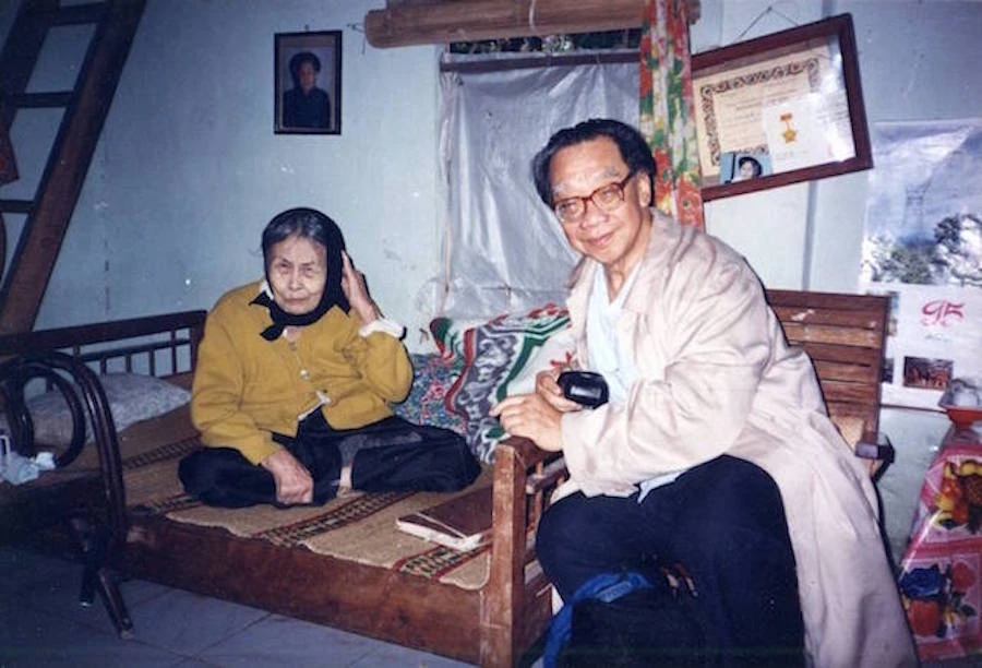 GS-TS Trần Văn Khê đến thăm nghệ nhân ca trù Quách Thị Hồ năm 1995. Ảnh: TL