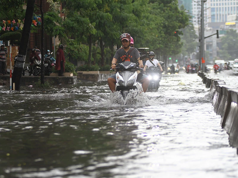 Ngập nước là nỗi lo của người dân TP.HCM mỗi khi có mưa lớn và triều cường. Ảnh: THU TRINH