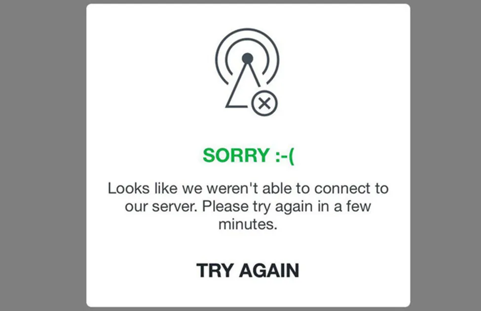Khi cả lái xe và người dùng cố truy cập vào ứng dụng Grab để sử dụng dịch vụ, thông báo lỗi đã hiện ra: “Looks like we weren't able to connect to our server. Please try again in a few minutes” (Có vẻ như chúng tôi không thể kết nối được với máy chủ. Vui lòng thử lại trong vài phút nữa).