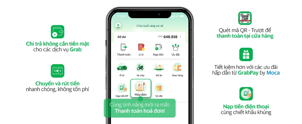 Thông tin thêm về tính năng thanh toán hóa đơn vui lòng tham khảo tại https://www.grab.com/vn/blog/thanh-toan-hoa-don-dien-nuoc-de-dang-tien-loi-qua-vi-dien-tu-grabpay-by-moca/