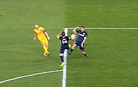 Gabi đã để bóng chạm tay trong vòng cấm nhưng trọng tài lại cho rằng không phải.
