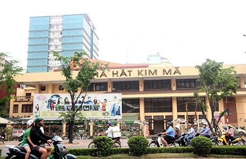Nhà hát Kim Mã được đầu tư lớn, thời gian xây dựng lâu… nhưng hiện ít khi sáng đèn và khuôn viên phía trước đã được cho thuê để bán cây cảnh. Ảnh. V.THỊNH