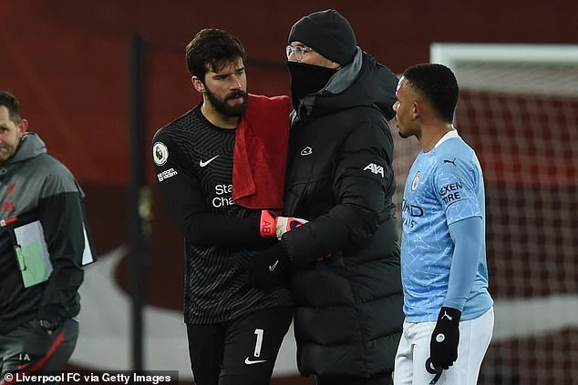 Klopp an ủi Alisson Becker sau trận đấu. ẢNH: GETTY