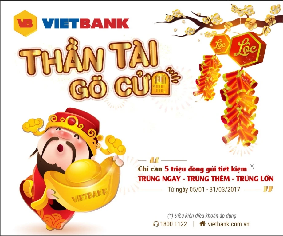 Theo đó, các khách hàng gửi tiết kiệm tại Vietbank từ 5 triệu đồng trở lên với nhiều kỳ hạn linh hoạt từ một tháng sẽ được bốc thăm trúng thưởng tiền mặt ngay khi gửi. Đồng thời được tặng mã số dự thưởng tham gia quay số trúng lớn cuối chương trình với các giải thưởng giá trị lên đến 10 lượng vàng 9999.