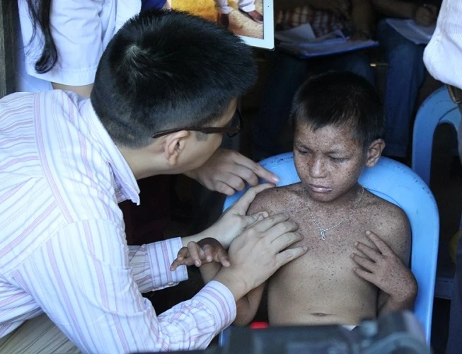 Đoàn bác sĩ của Bộ Y tế vừa có buổi làm việc tại xã Thượng Cửu, Thanh Sơn, Phú Thọ để tìm hiểu căn “bệnh lạ” về da được phản ánh trong thời gian qua.
