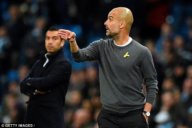 Dải băng màu vàng trên ngực áo Pep Guardiola.