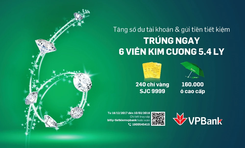 Trong số đó, có chương trình “Tăng số dư tài khoản & gửi tiết kiệm trúng ngay kim cương vĩnh cửu” của VPBank dành cho khách hàng khi chỉ cần duy trì số dư bình quân từ 10 triệu đồng trở lên trên tài khoản là được.