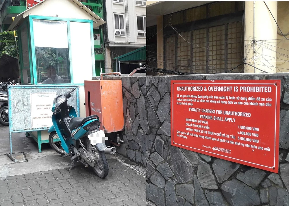 “Đây là khách sạn chứ không phải là nơi trông xe, vì vậy vào gửi xe qua đêm mà không sử dụng bất cứ dịch vụ nào của khách sạn sẽ bị phạt. Đối với xe máy là 1 triệu, ô tô từ 5 chỗ trở xuống là 4 triệu, lớn hơn là 5 triệu. Ngược lại, chỉ cần sử dụng một dịch vụ, khách sẽ được trông xe miễn phí” – bà Hà nói.