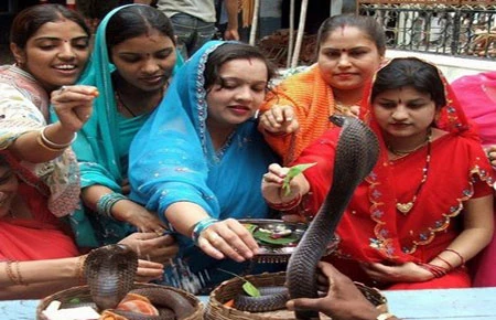 Ở Ấn Độ, rắn được cưng chiều vì được coi là con vật linh thiêng, có thể ban tuổi thọ cho người già, ban con cái cho các bà mẹ. Dân Ấn Độ sống rất gần gũi rắn: trẻ em mới chập chững biết đi đã nghịch rắn, tín đồ đạo Hindu hôn hít rắn, các chàng trai cuốn rắn trên cổ đi chơi… Họ dành riêng cho rắn một ngày Tết trang trọng vào tháng 8 hàng năm (hình). Ngày đó, cả nước tổ chức hàng loạt cuộc rước rắn, tế lễ rắn, hóa trang rắn, thi rắn khỏe, rắn đẹp, rắn lạ, biểu diễn xiếc rắn, múa rắn… vô cùng vui vẻ, rầm rộ.