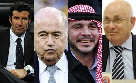 Từ trái sang phải, 4 ứng cử viên cho chiếc ghế chủ tịch FIFA, Luis Figo; Đương kim chủ tịch FIFA Sepp Blatter;Đương kim Phó Chủ tịch FIFA, Chủ tịch LĐBĐ Tây Á Ali Al- Hussein; Chủ tịch LĐBĐ Hà Lan Michael van Praag.