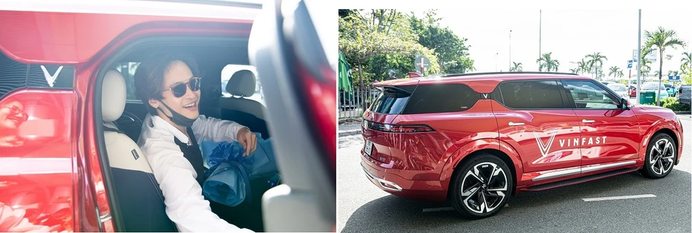 Nam ca sĩ xuất hiện với hình ảnh thư sinh quen thuộc. Anh được đông đảo người hâm mộ nhận ra, chụp ảnh thần tượng. Ngay lập tức nam nghệ sĩ lên chiếc xe VinFast VF9 – phương tiện đưa đón nghệ sĩ của Vinpearl để di chuyển về đảo Hòn Tre.