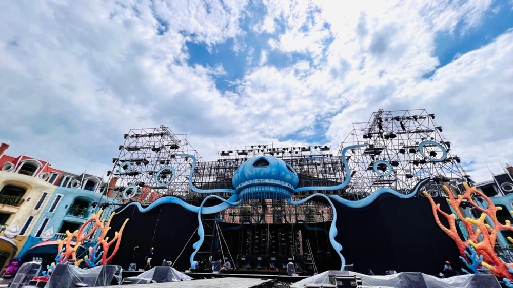 Hiện tại, sân khấu chính của 8Wonder theo concept đại dương vô cực, nổi bật với hình sứa và tiểu cảnh san hô khổng lồ đã hoàn thiện tại quảng trường Wonder Square hơn 10.000 m2. Đông đảo du khách đến VinWonders Nha Trang những ngày qua vô cùng ấn tượng với không gian trình diễn độc đáo án ngữ tại đây.
