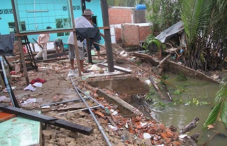 Một căn nhà bị đổ sập tại xã Long Hậu, huyện Cần Giuộc do bị sạt lở. Ảnh: HN