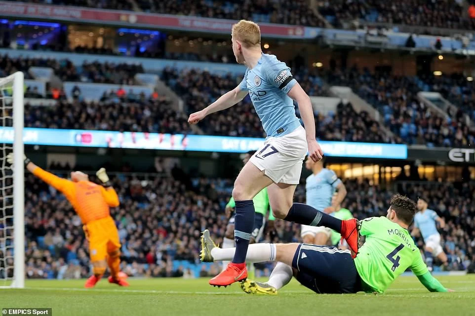 De Bruyne mở tỷ số cho đội chủ nhà từ cú sút ở góc cực hẹp.