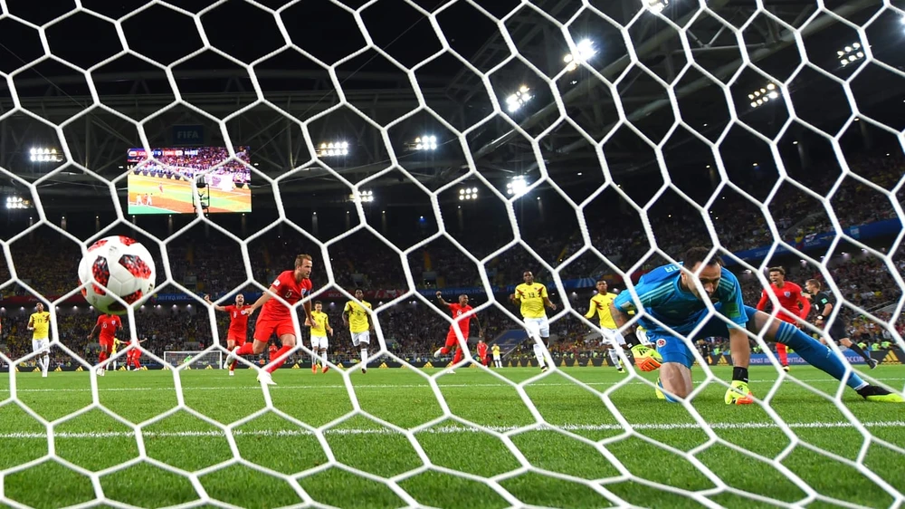 Harry Kane sút thắng loạt penalty đầu tiên.