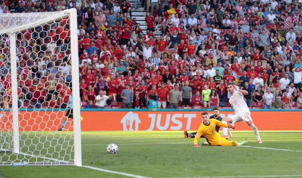 Phút 77, trung vệ Pau Torres có đường phất bóng từ phần sân nhà cho Ferran Torres bứt tốc xâm nhập vòng cấm, trong tư thế đối mặt thủ môn Croatia, Ferrran Torres dứt điểm vào góc xa nâng tỷ số lên 3-1 cho Tây Ban Nha.