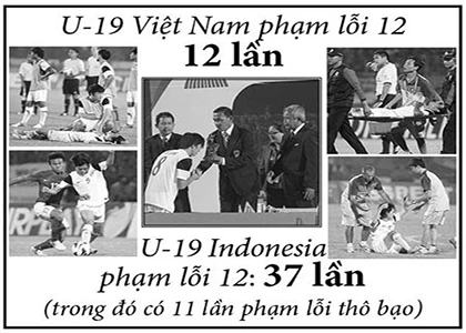 Trong khi đó, các cầu thủ U19 Indonesia chủ động chơi phòng ngự phản công và không ngần ngại phạm lỗi thô bạo để phá lối chơi của U19 VN.