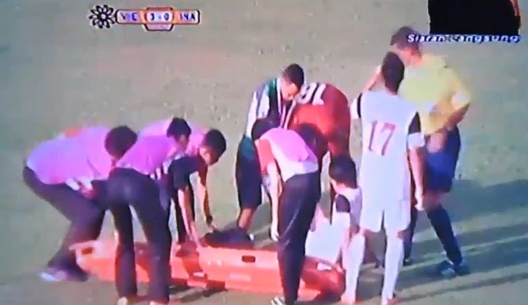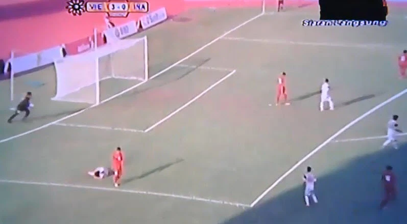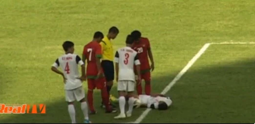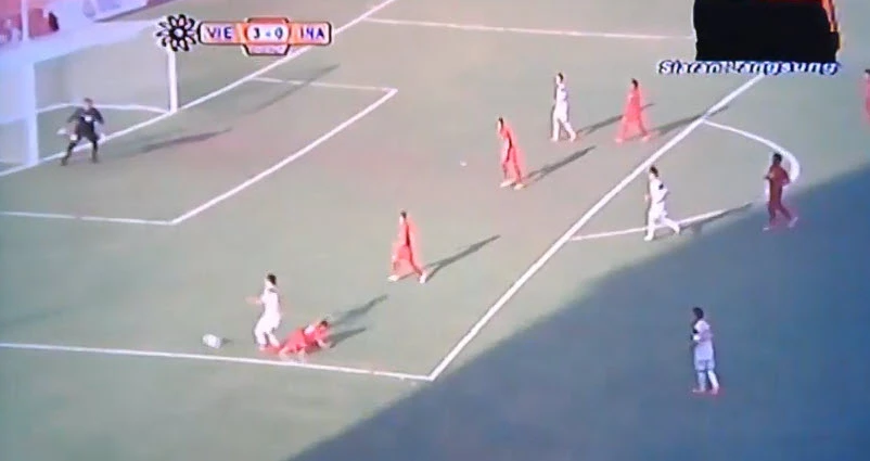 Phút 52, Cầu thủ Indonesia vừa có pha tấn công không thành công, sau đó vì quá ham bóng nên cầu thủ Indonesia đã phạm lỗi khá thô khiến Văn Sơn nằm sân.