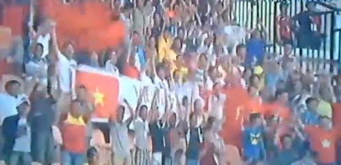 Ở dưới sân và cả trên khán đài ăn mừng bàn thắng nâng tỉ số của Hồng Duy.