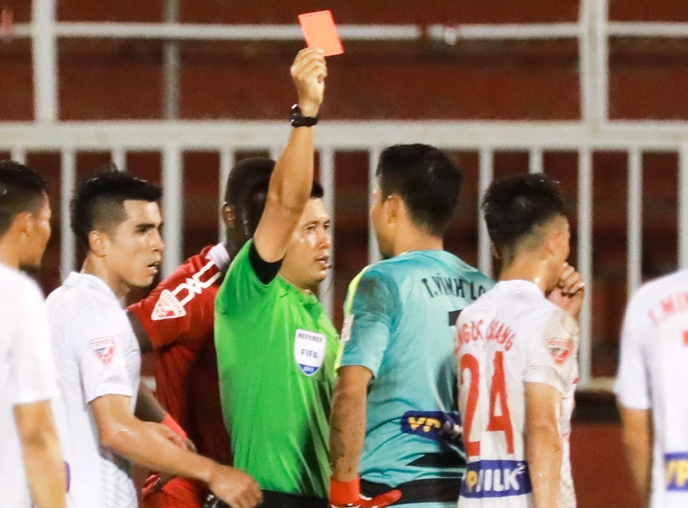 Thủ môn Tô Vĩnh Lợi (HA Gia Lai) bị thẻ đỏ trận thua TP.HCM.