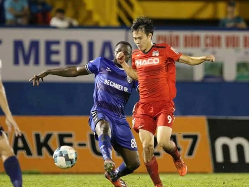 Văn Toàn, cầu thủ năng nổ nhất của HA Gia Lai, vẫn không thể cứu đội này khỏi thất bại đậm trước B. Bình Dương. Ảnh: CTV