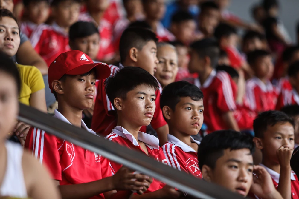 Nhóm cổ động viên "nhí" của U-17 HA Gia Lai cổ vũ đàn anh U-17