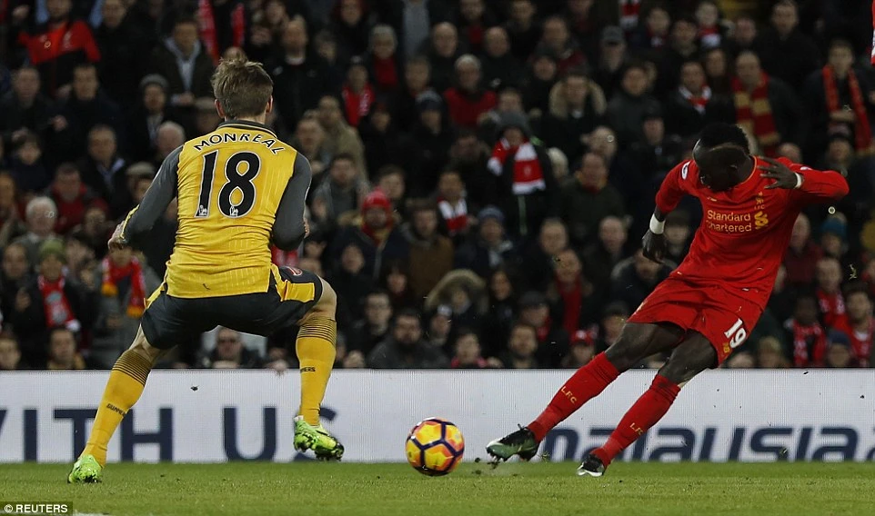 Bế tắc trong việc tìm đường vào khung thành thủ môn Simon Mignolet, Arsenal đã phải trả giá ở phút cuối hiệp 1. Bắt nguồn từ pha tấn công bên cánh của Milner, bóng được đưa dần vào vòng cấm, Firmino đã có thời gian chuyền bóng để Mane tung cú dứt điểm dễ dàng nhân đôi cách biệt cho "Lữ đoàn đỏ".