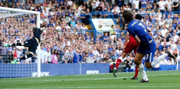 Sau bàn thắng mở tỷ số, Chelsea chủ động chơi chậm để bảo toàn tỷ số trước khi hiệp một kết thúc. Liverpool tràn lên tìm bàn gỡ, nhưng đứng trước ‘bức tường màu xanh’ được các cầu thủ Chelsea bày ra, các mũi tấn công của Liverpool vẫn không thể nào tìm ra cách làm rung lưới thủ môn Courtois
