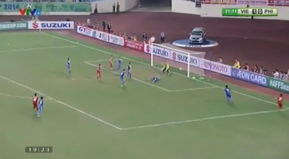 Phút 29, Công Vinh đã ngã trong vòng cấm khi bị hậu vệ Philippines kéo ngã nhưng trọng tài vẫn không cho Việt Nam được hưởng quả đá phạt 11 mét.