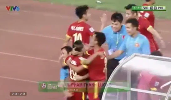 Có được bàn thắng thứ 2, các cầu thủ Việt Nam càng thi đấu càng hay và chỉ 8 phút sau, Thành Lương đã có cú sút xa tuyệt đẹp bóng đi lượn vào góc xa nâng tỉ số lên 3-0.