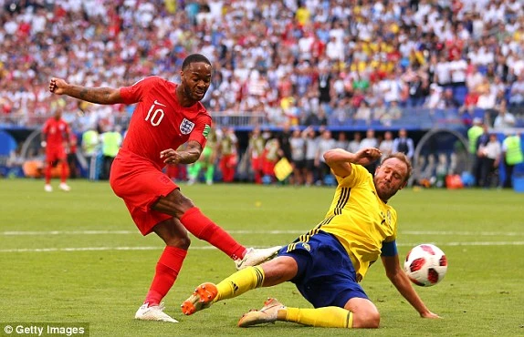 Đó là cú sút xa trong thế rất trống trải đi chệch cột dọc của Harry Kane, đó là hai tình huống thoát xuống liên tiếp nhận đường chuyền dài của đồng đội đối mặt với thủ môn Olsen của Sterling. Tuy nhiên, trong những pha xử lý cuối cùng, Sterling đã quá chậm chạp và xử lý thiếu chuẩn xác nên tuyển Anh không thể có bàn thắng.