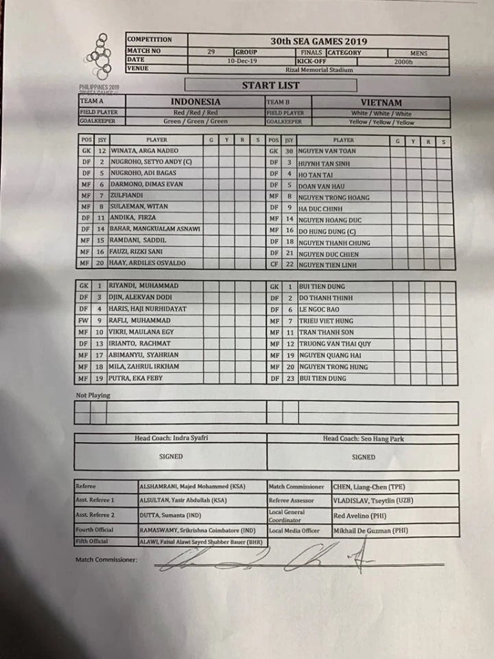 Ở trận đấu này, U-22 Việt Nam xuất phát với trang phục toàn trắng, còn U-22 Indonesia xuất phát với trang phục toàn đỏ.