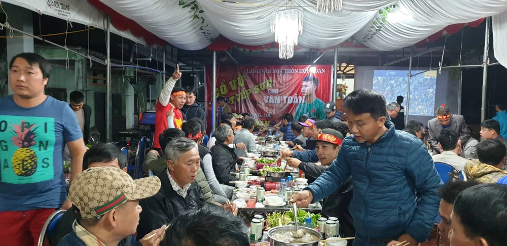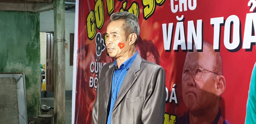 Cha thủ môn Văn Toản, ông Nguyễn Văn Sáng, đã làm mâm cỗ mời hàng xóm đến xem bóng đá cổ vũ cho U-22 Việt Nam. Ông gửi lời đến con trai và đội U-22 Việt Nam hãy thi đấu tự tin để giành chiến thắng. Ảnh: ĐỖ HOÀNG