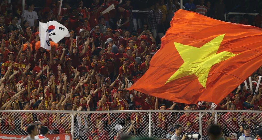 Hai lá cờ Việt Nam và Hàn Quốc luôn có mặt trong mọi trận đấu của các đội tuyển Việt Nam dưới thời HLV Park Hang-seo.