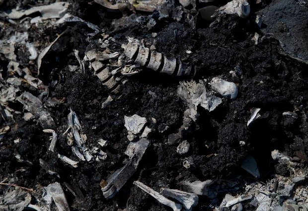 Một đoạn xương người lẫn trong tro bụi của chiếc Boeing 777