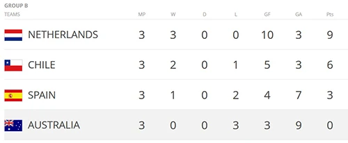 Với kết quả này, Hà Lan có chiến thắng thứ 3 liên tiếp tại giải và giành ngôi đầu bảng. Các cầu thủ Chile đành tạm hài lòng với vị trí thứ 2, vị trí nhiều khả năng sẽ phải đụng chủ nhà Brazil ở vòng 1/16 đội.