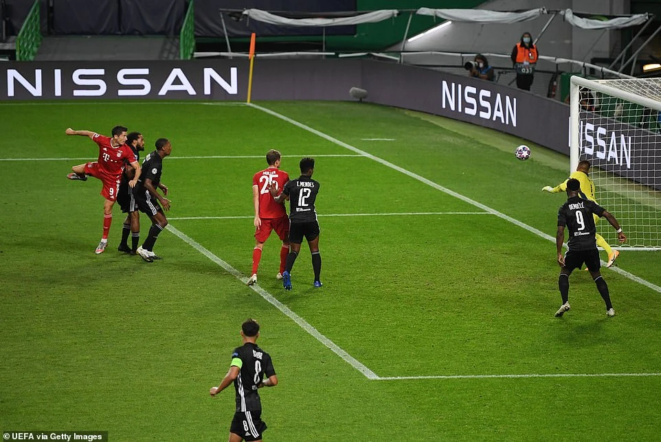Bàn thắng giúp các cầu thủ Bayern giải tỏa áp lực và họ thi đấu cực kỳ hưng phấn trong những phút còn lại của hiệp 1. Lewandowski và Gnabry thi nhau bắn phá khung thành Lyon, đặc biệt ngôi sao người Ba Lan bỏ lỡ rất nhiều cơ hội ghi bàn.