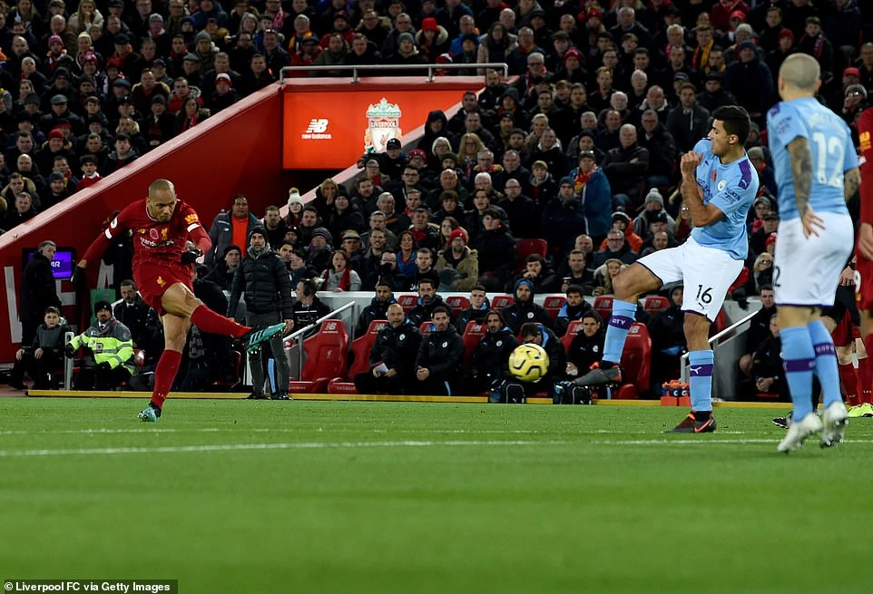 Fabinho mở điểm cho Liverpool bằng siêu phẩm sút xa ở phút thứ 6.