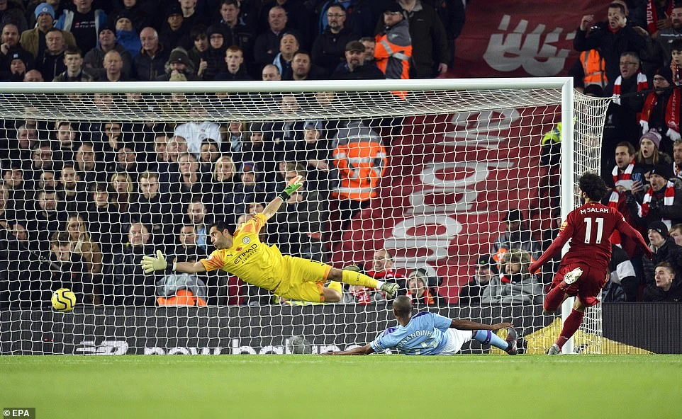 Thua hai bàn, Man. City vẫn đẩy cao đội hình để tấn công dồn ép. Tuy nhiên Aguero và các đồng đội trên hàng công của “man xanh”, không thể đánh bại được hàng thủ vững chắc được chỉ huy bởi thủ lĩnh Van Dijk. Liverpool sau khi có được hai bàn dẫn trước, thi đấu chắc chắn và kết thúc hiệp một với lợi thế dẫn trước 2-0.
