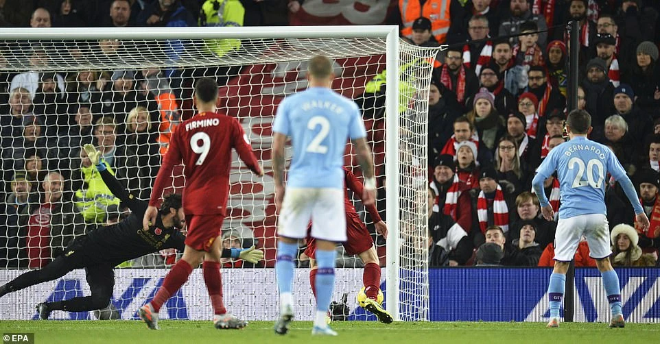Nỗ lực tấn công liên tục cũng giúp Man. City có được bàn thắng rút ngắn tỷ số xuống còn 1-3 ở phút 78. Hậu vệ cánh Angelino có đường căng ngang bên cánh trái vào vòng cấm, tiền đạo Bernardo Silva dứt điểm quyết đoán đánh bại thủ môn Alisson.