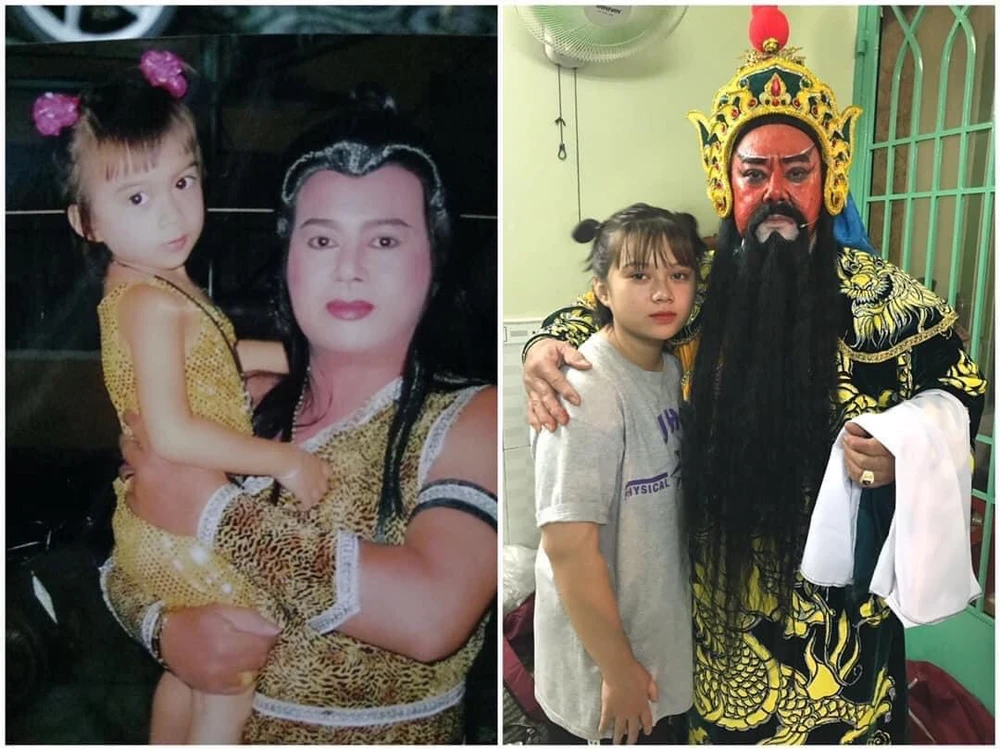 Hà Mỹ Anh lúc nhỏ và ông nội nghệ sĩ Công Chấn. Ảnh: CTCC