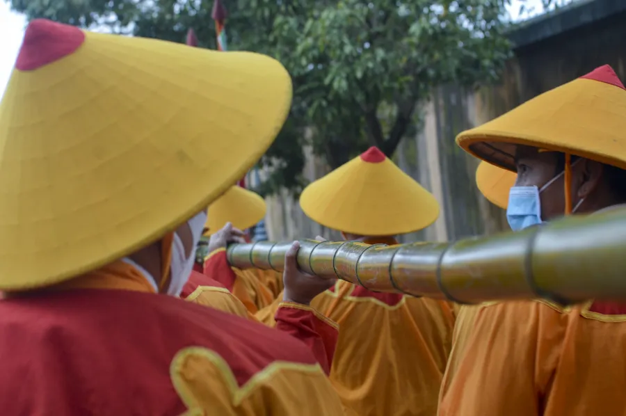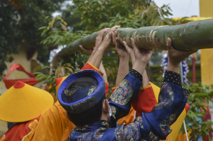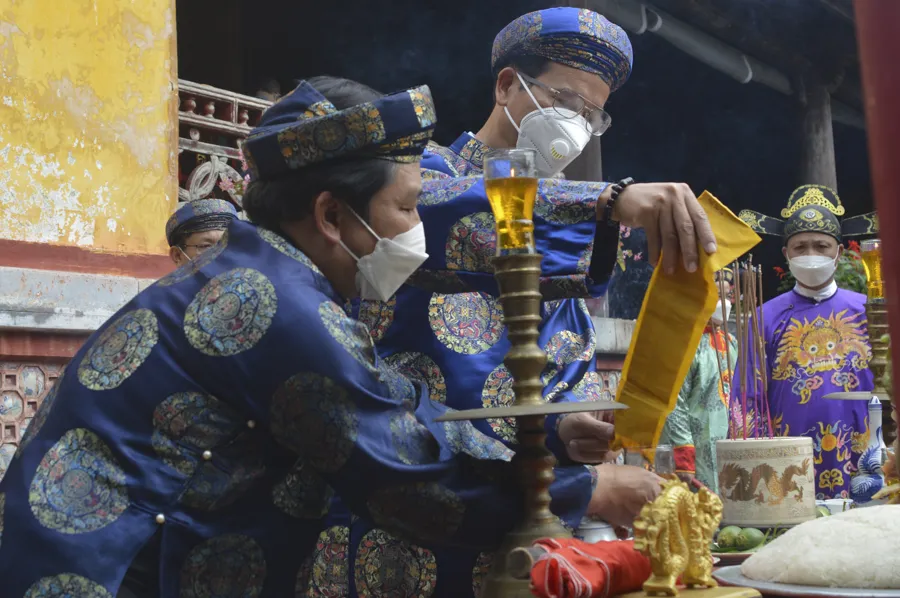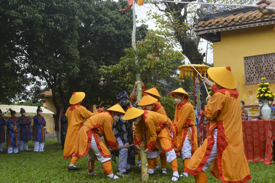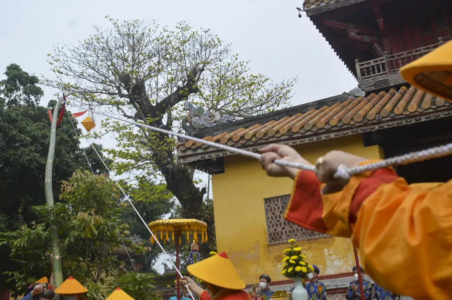 Trước đó, vào ngày 23 tháng Chạp, Trung tâm Bảo tồn Di tích Cố đô Huế đã làm lễ thướng tiêu (dựng nêu) để treo ấn đón tết.