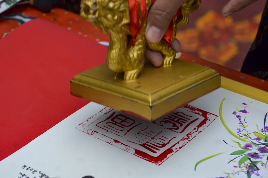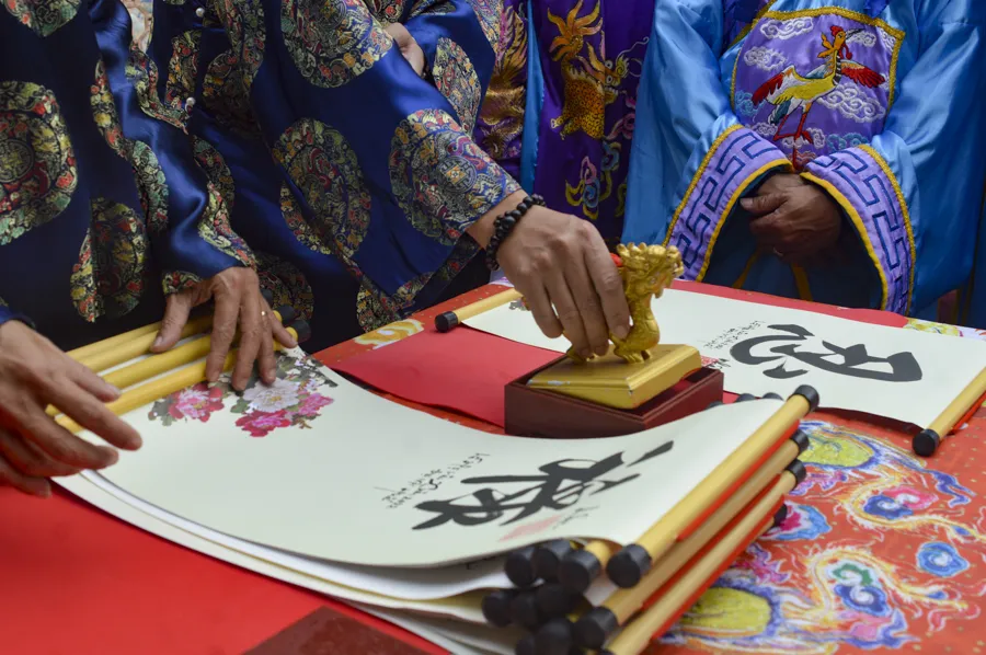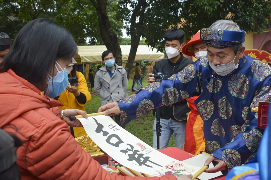 Sau lễ hạ nêu là phần khai ấn tân niên và tặng chữ chúc xuân.