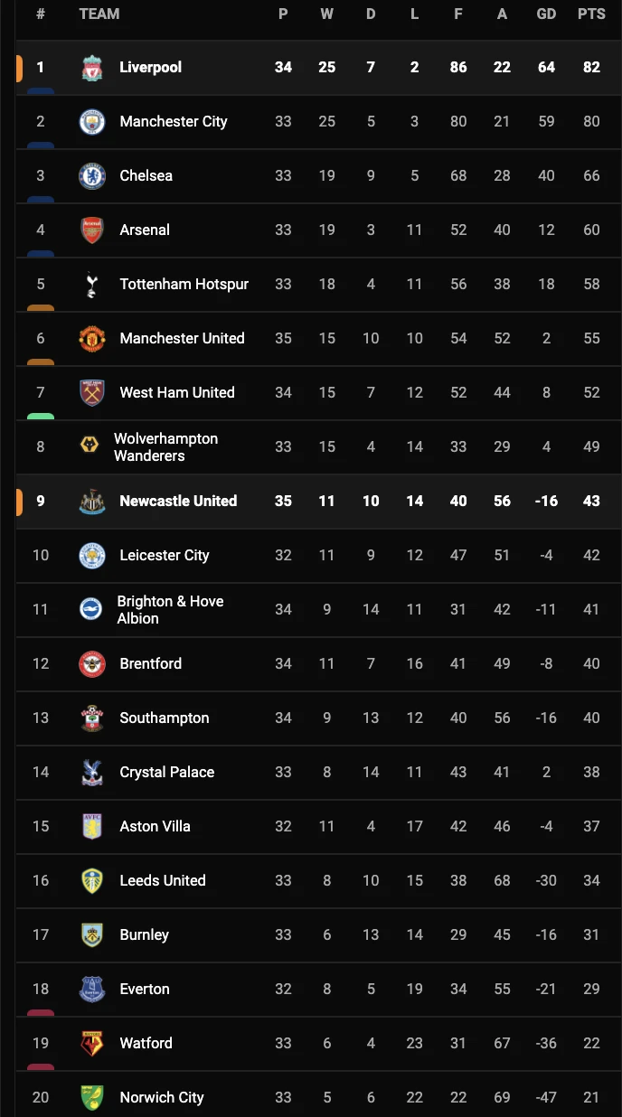 Newcastle sau khởi đầu tồi tệ khi nằm trong nhóm rớt hạng đã lột xác ngoạn mục từ đầu năm đến nay và hiện đã vươn lên vị trí thứ 9 Premier League. Tuy nhiên, trước một Liverpool hùng mạnh và cần 3 điểm để vượt lên dẫn đầu Premier League, Newcastle vẫn quá “nhỏ bé” so với đội bóng của Jurgen Klopp.